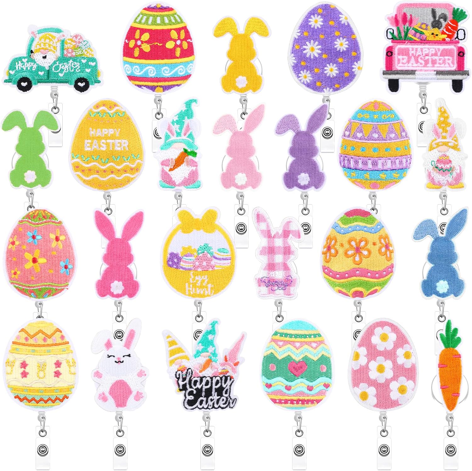 Slip-clip badge reels featuring a colorful fun Easter felt applique!