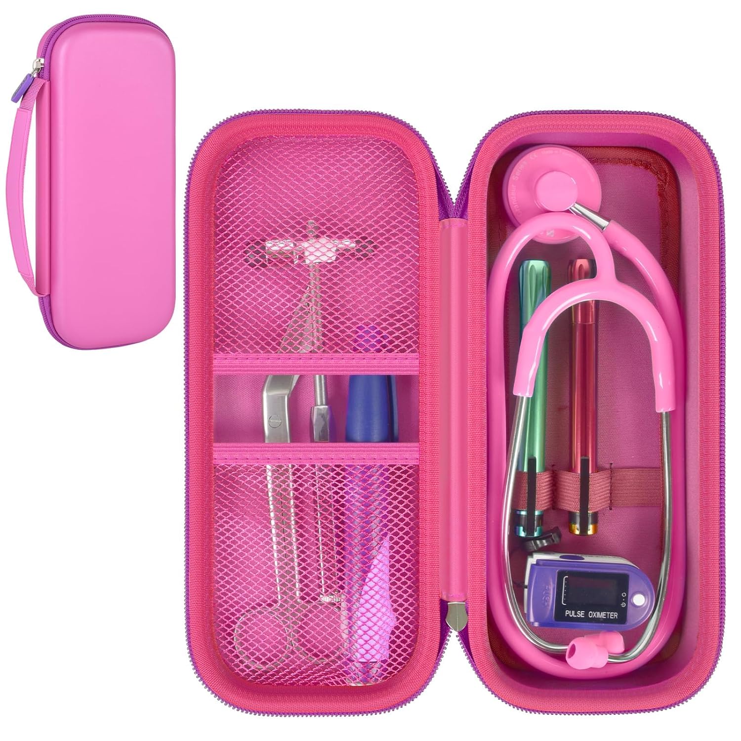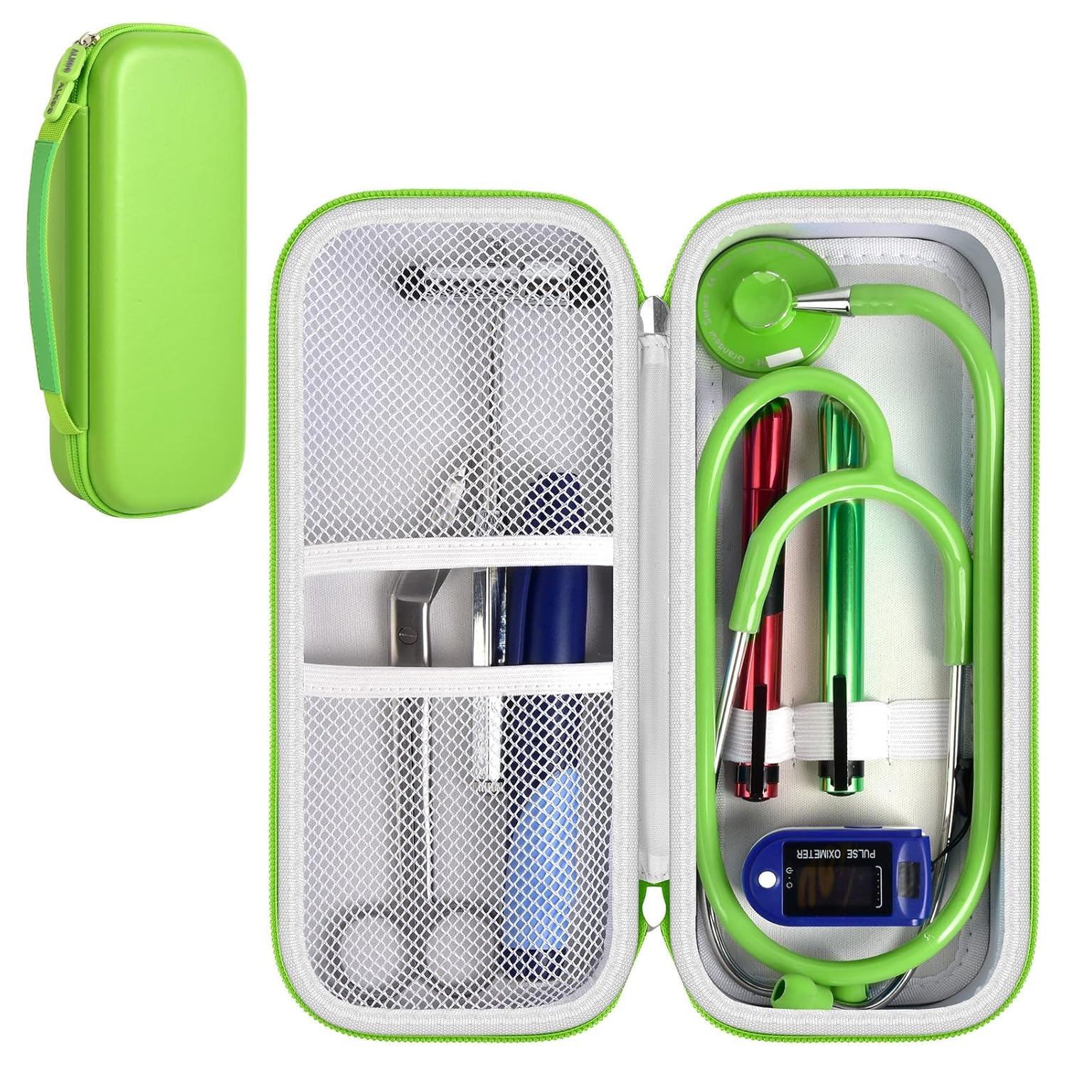 These stylish cases are made of the hard EVA materials, and feature a shockproof fluffy fabric inner layer fully padded, which effectively absorb impacts, fully protecting your stethoscope! Also, every case features a double internal mesh pocket and 3 elastic slots for nurse accessories! Fully compatible with 3M Littmann Cardiology III Stethoscopes, Classic III Stethoscopes, Lightweight II S.E. Stethoscopes, Classic II S.E. Stethoscopes, ADC Stethoscopes and many more!